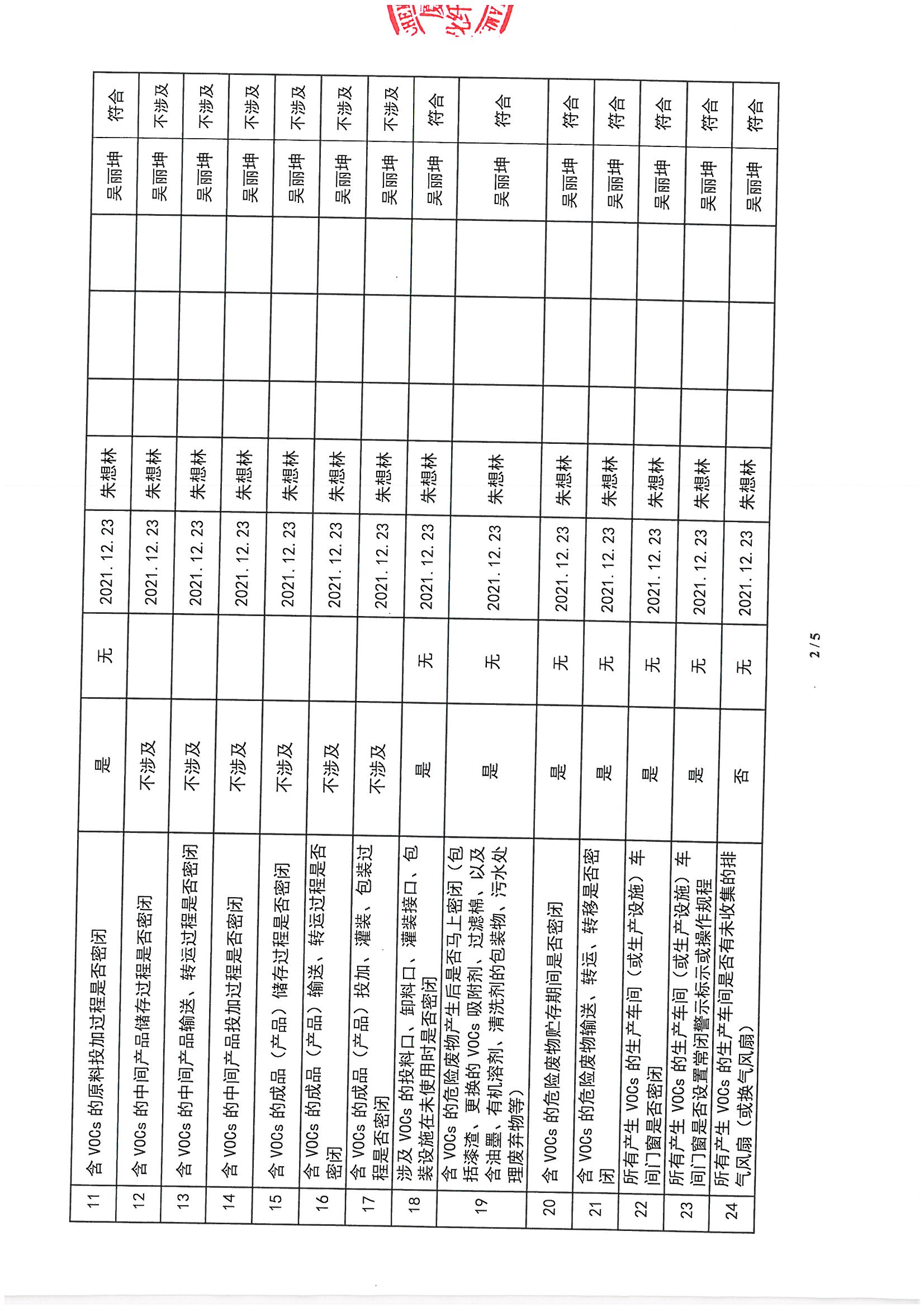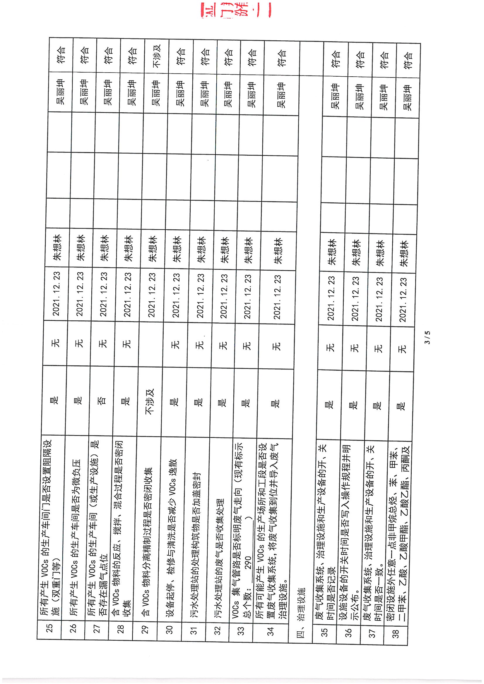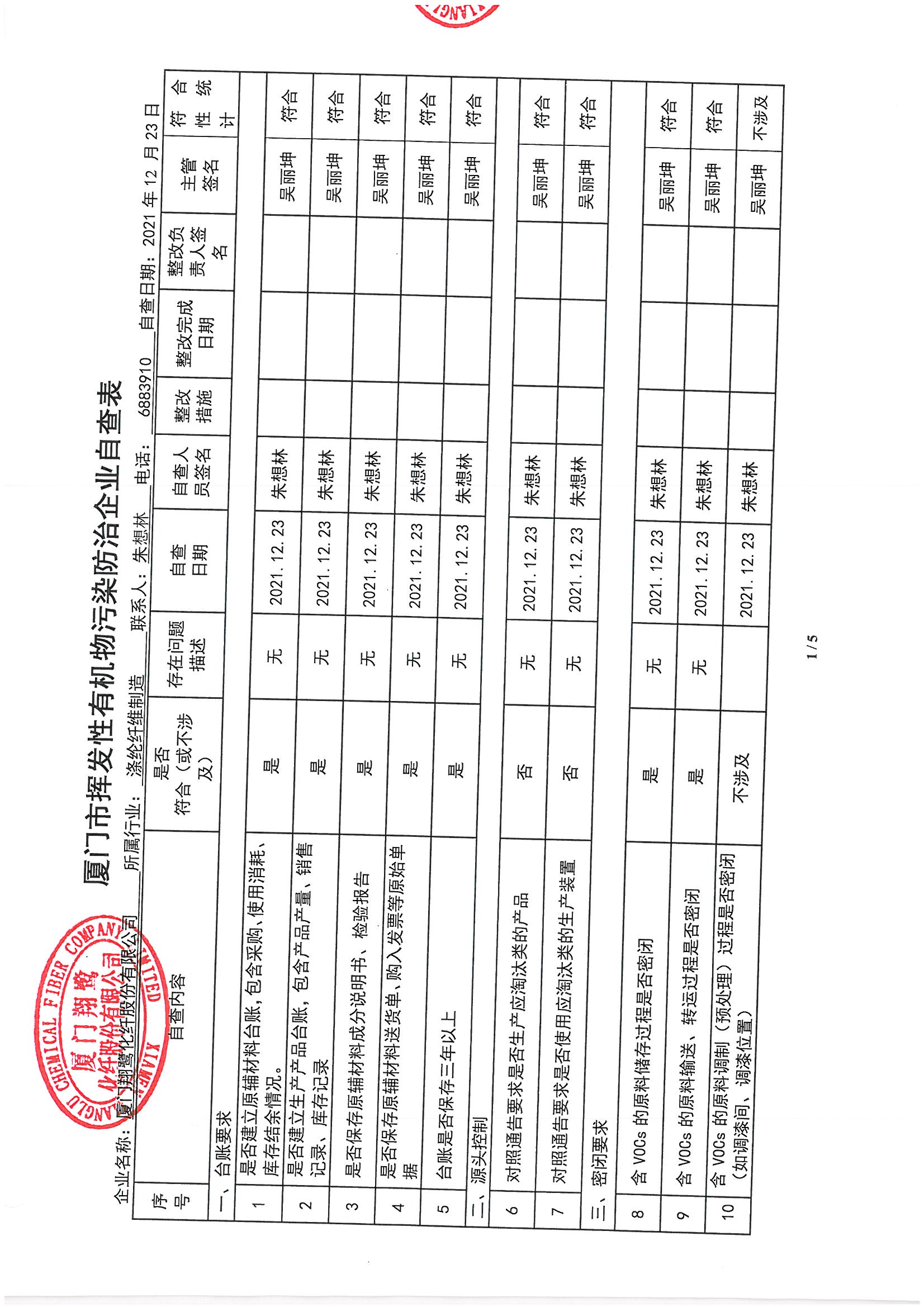 廈門市揮發(fā)性有機(jī)物污染防治企業(yè)自查表 (2021年 第四季度)