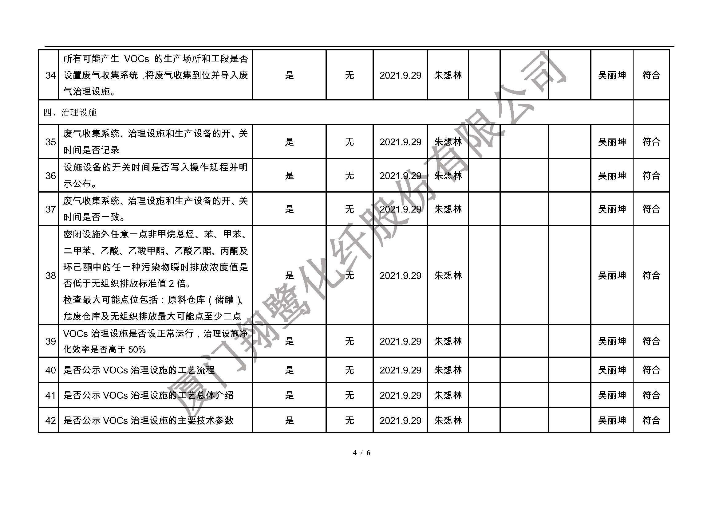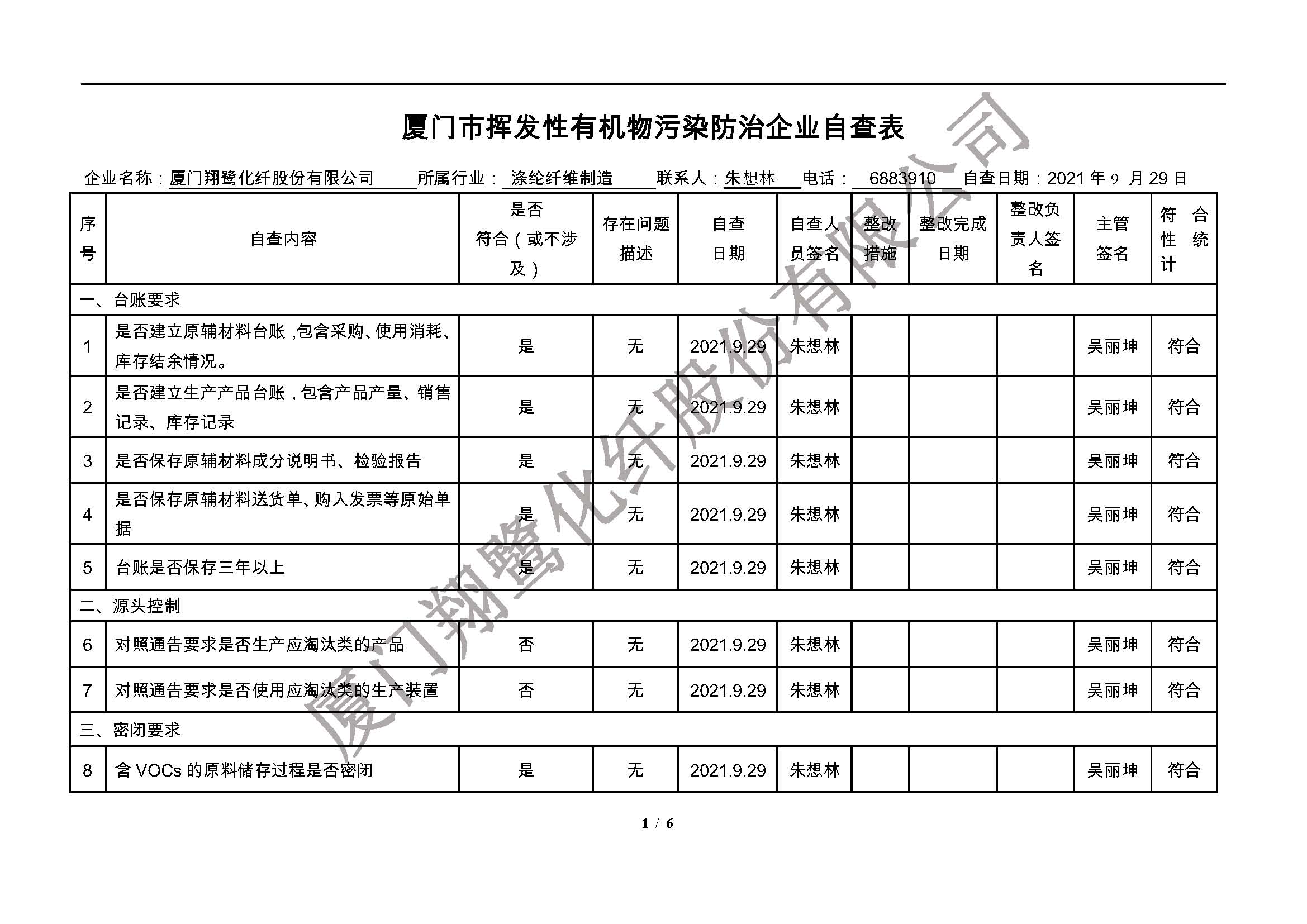 廈門市揮發(fā)性有機(jī)物污染防治企業(yè)自查表(2021年 第二季度)