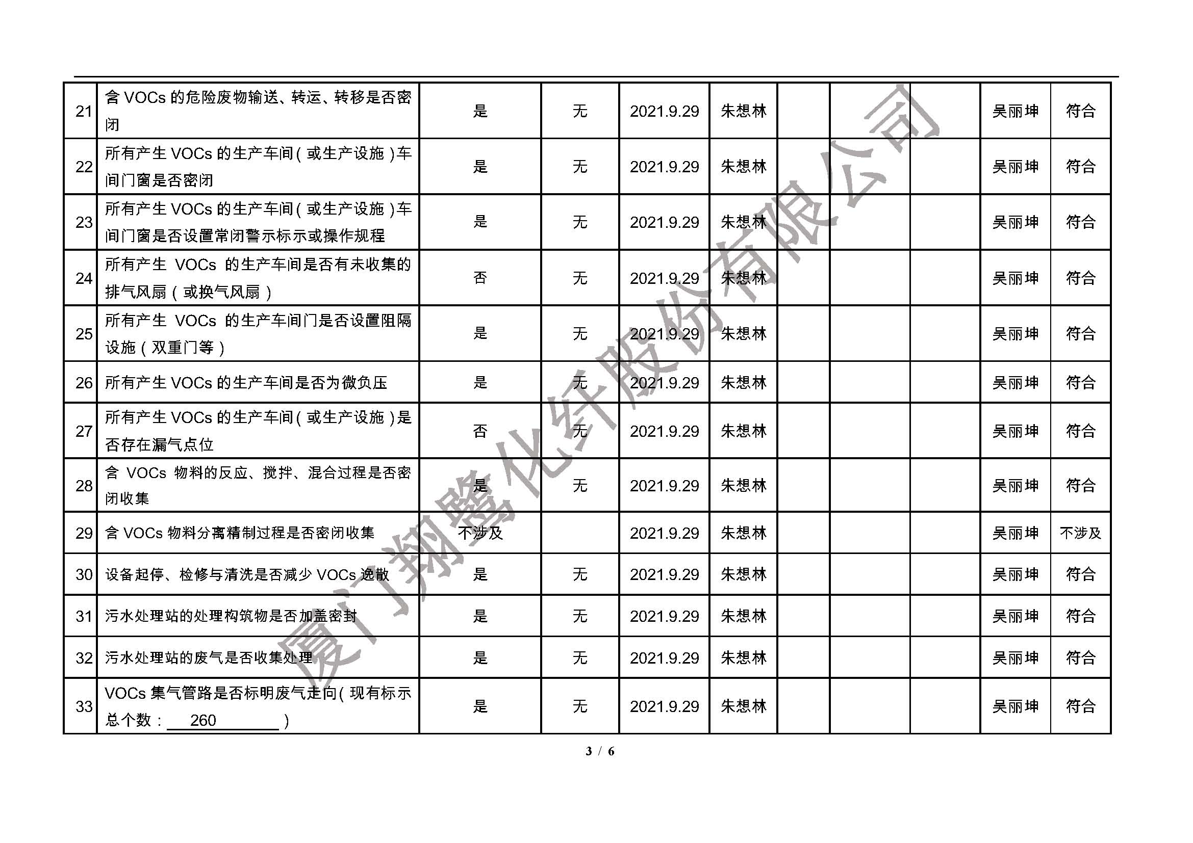 廈門市揮發(fā)性有機(jī)物污染防治企業(yè)自查表(2021年 第三季度)
