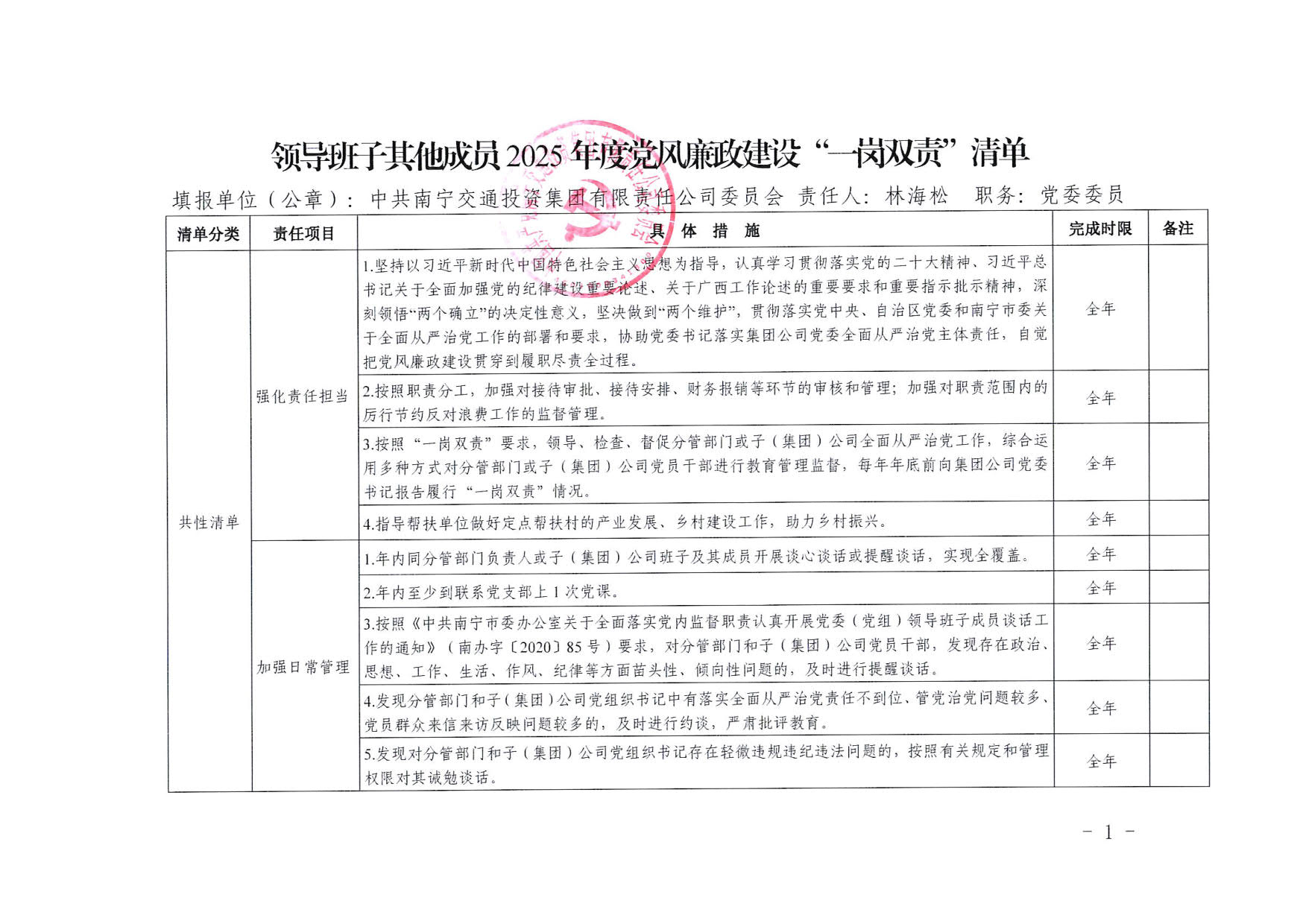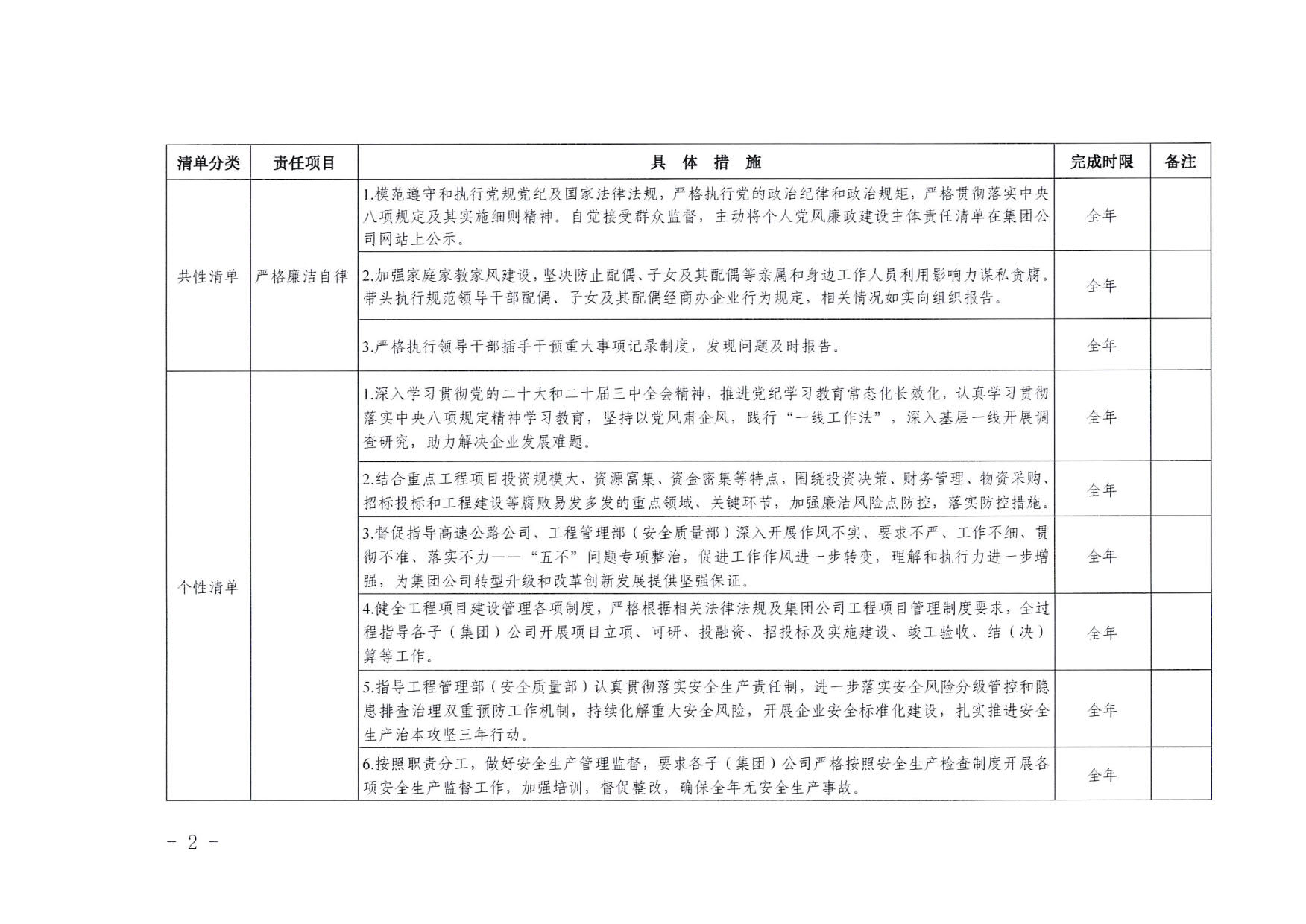 南寧交投集團領(lǐng)導(dǎo)班子其他成員2025年度黨風(fēng)廉政建設(shè)“一崗雙責(zé)”清單(二)
