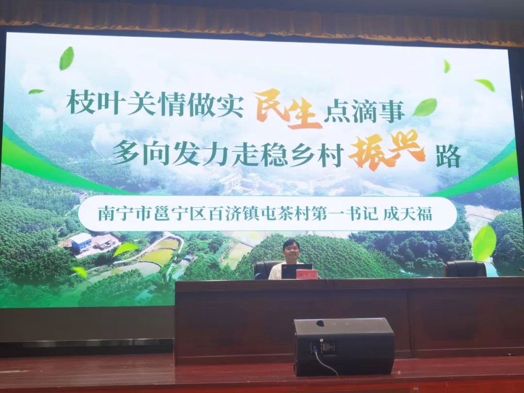 6月17日,南寧市委組織部在市委黨校舉辦2025年新一輪駐村第一書記示范培訓(xùn)班,邀請了南寧交投集團(tuán)下屬南寧高速公路公司選派邕寧區(qū)百濟(jì)鎮(zhèn)屯茶村原第一書記成天福進(jìn)行授課。